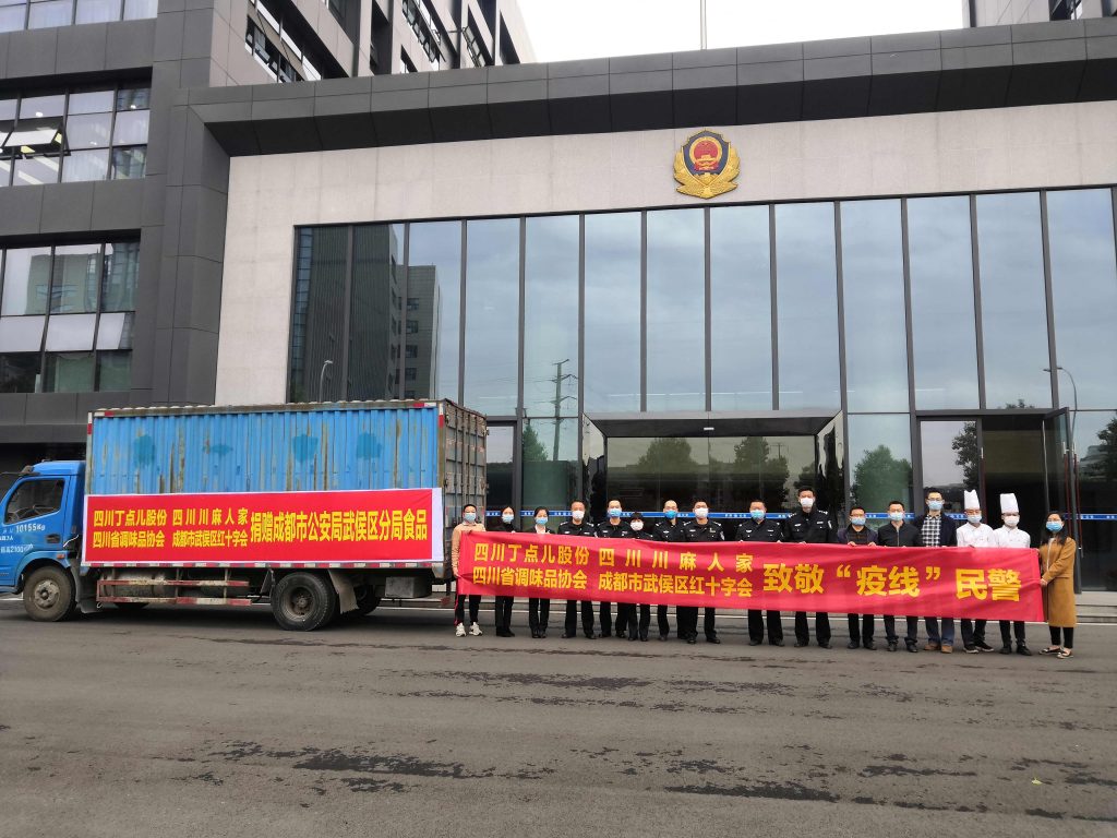 ? ? ? ? 3月27日,丁點兒股份積極響應(yīng)四川省調(diào)味品協(xié)會發(fā)起關(guān)于在全省調(diào)味品行業(yè)開展共赴戰(zhàn)“疫”,“味”問民警活動的號召,再次通過成都市武侯區(qū)紅十字會向成都市公安局武侯區(qū)分局捐贈600余件由子公司“四川川麻人家食品開發(fā)有限公司”提供的川味調(diào)料。公司副總經(jīng)理龐永強先生、四川省調(diào)味品協(xié)會秘書長王三躍先生、武侯區(qū)公安分局、武侯區(qū)紅十字會等相關(guān)領(lǐng)導參與了此次捐贈活動。