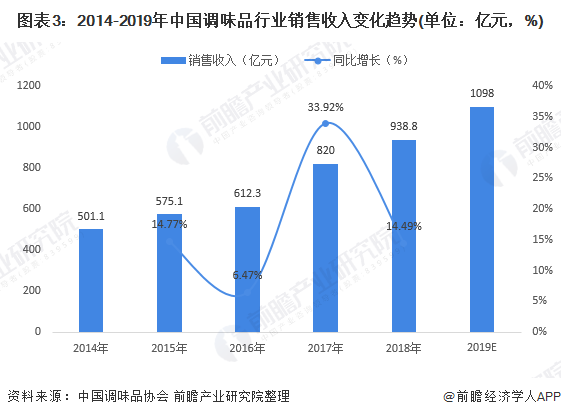 注:中國調(diào)味品協(xié)會(huì)尚未發(fā)布最新數(shù)據(jù),2019年數(shù)據(jù)為前瞻根據(jù)行業(yè)發(fā)展形勢(shì)測(cè)算所得,最終數(shù)據(jù)以協(xié)會(huì)公布為準(zhǔn)。