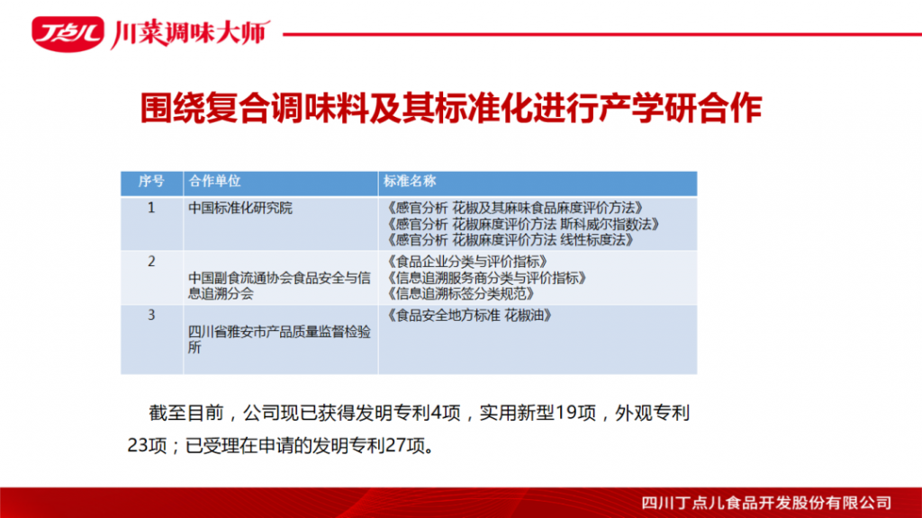 ? ? ? 以“豐富生活點(diǎn)點(diǎn)滋味”為理念,丁點(diǎn)兒股份致力于推動(dòng)川菜調(diào)味標(biāo)準(zhǔn)化、川菜菜品工業(yè)化的發(fā)展,為餐飲客戶提供安全、便捷的調(diào)味標(biāo)準(zhǔn)化產(chǎn)品,簡化川菜烹飪流程,讓川菜烹調(diào)變簡單!