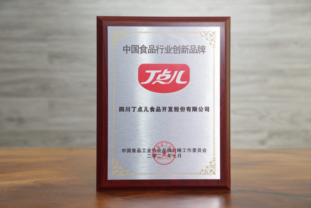 ? ? ? ?近日,由中國食品工業(yè)協(xié)會與東莞市人民政府共同舉辦的“2021中國食品品牌創(chuàng)新發(fā)展大會”在廣東省東莞市隆重舉行。會上,四川丁點兒食品開發(fā)股份有限公司“丁點兒”品牌榮獲“中國食品行業(yè)創(chuàng)新品牌”榮譽稱號。