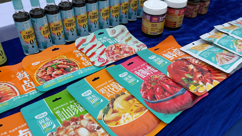 ? ? ? ?同時,丁點兒股份作為承辦單位,也為大家?guī)砹艘粓龃ㄎ稑藴驶瘡秃险{味料特色產品展示,丁點兒-麻得倒紅花椒油、香鍋干鍋醬、無脂肪白灼汁、泡鳳爪調味料等豐富的產品種類吸引了現(xiàn)場師生的目光,大家紛紛駐足了解。