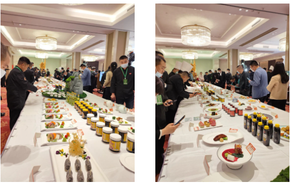 比賽現(xiàn)場(chǎng),丁點(diǎn)兒股份干鍋醬、麻得倒花椒油、藤椒油、椒麻雞汁、金湯酸菜醬等企業(yè)明星產(chǎn)品展示突出亮眼,出眾的味型引得眾多嘉賓駐足品嘗,贊不絕口。