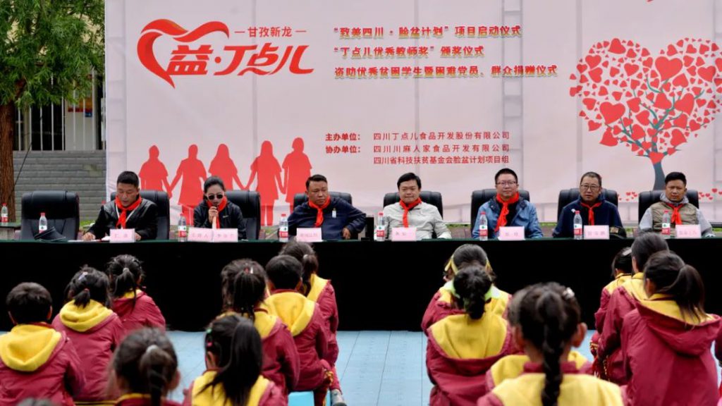 6月30日,丁點(diǎn)兒股份攜手四川省科技扶貧基金會(huì)臉盆計(jì)劃項(xiàng)目組和四川川麻人家食品開(kāi)發(fā)有限公司來(lái)到色威鎮(zhèn)樂(lè)安小學(xué),隆重舉行了“致美四川·臉盆計(jì)劃&丁點(diǎn)兒優(yōu)秀教師”公益活動(dòng)啟動(dòng)暨幫扶捐贈(zèng)儀式,新龍縣縣委常委、副縣長(zhǎng)黃如一、丁點(diǎn)兒股份副總張欣、色威鎮(zhèn)黨委書(shū)記嚴(yán)峰、丁點(diǎn)兒股份行政經(jīng)理李興益等出席了本次活動(dòng)并講話。