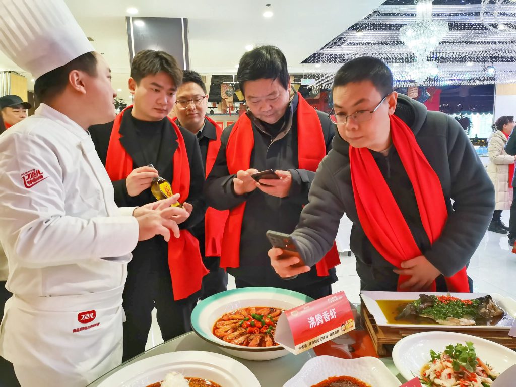 丁點(diǎn)兒高品質(zhì)特色川調(diào)菜品品鑒區(qū),前來(lái)咨詢(xún)了解的嘉賓絡(luò)繹不絕。大家被丁點(diǎn)兒菜品研發(fā)工程師何平、張西波及商務(wù)拓展經(jīng)理陳證宇烹飪的干燒鮑魚(yú)、沸騰香蝦、夫妻肺片、干鍋肥腸等菜品的香氣吸引,又被其味道征服,忍不住探尋特色菜品背后的烹飪秘籍。
