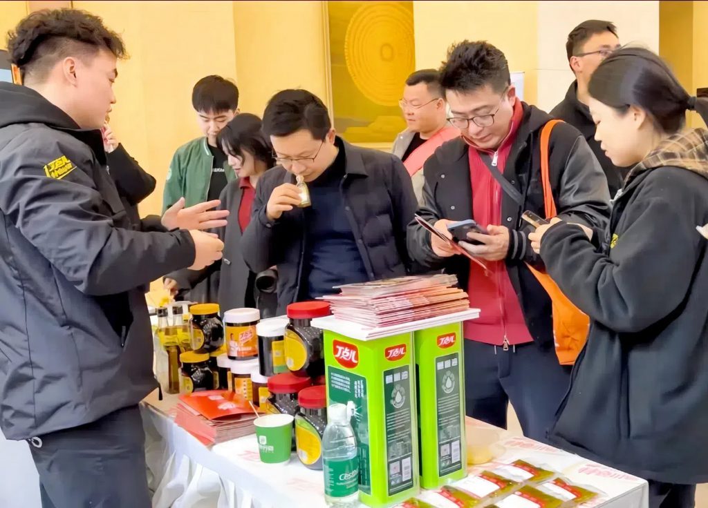 以丁點兒椒麻雞汁為契機,丁點兒市場部經(jīng)理倪春云圍繞《椒麻風·中國味》這一主題,生動講解了丁點兒如何通過傳統(tǒng)與創(chuàng)新相結(jié)合,打造出既保留地道川味精髓,又符合現(xiàn)代人口味需求的高品質(zhì)川調(diào)產(chǎn)品。并強調(diào):“丁點兒堅持以‘千年貢品’漢源花椒為原料,建立了8000余畝貢椒基地,從源頭保障產(chǎn)品品質(zhì)。公司麻得倒純萃花椒油、椒麻雞汁、青花椒麻辣醬等椒麻風味產(chǎn)品,一經(jīng)推出便受到了市場的高度肯定?!?/p>