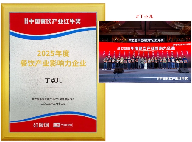憑借卓越的綜合實力及影響力,丁點兒食品獲“第五屆中國餐飲產(chǎn)業(yè)紅牛獎·2025年度餐飲產(chǎn)業(yè)影響力企業(yè)”榮譽!