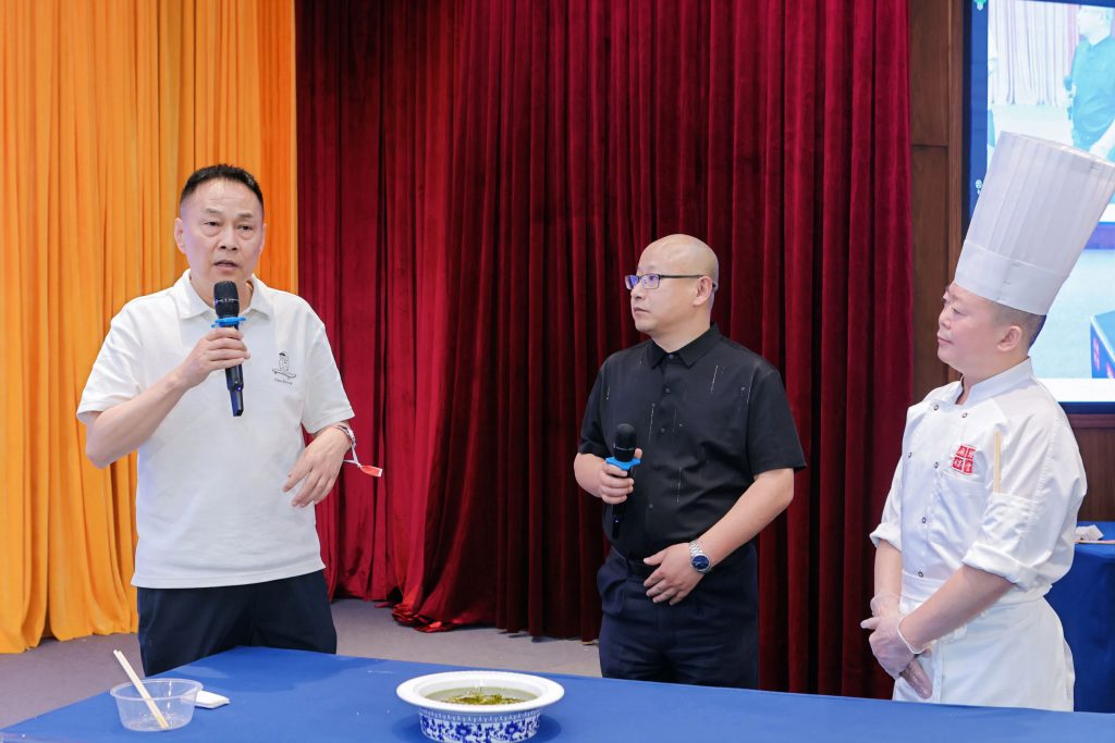 烹飪過程中,在中國烹飪大師劉全剛采訪交流下,2位總廚不僅展示了各自菜品的烹飪要點(diǎn)和菜品特色,還分享了自己的烹飪心得和技巧。著名烹飪大師肖見明現(xiàn)場品鑒點(diǎn)評到:”兩道作品既守住川菜魂,又開辟新思路,為傳統(tǒng)技藝注入現(xiàn)代活力,非常棒!值得我們新生代餐飲廚師學(xué)習(xí)!”