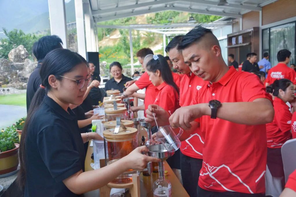 活動(dòng)尾聲,大家體驗(yàn)了一次獨(dú)特的貢椒足浴,麻感絲絲滲透,旅途疲憊頓消。調(diào)酒臺(tái)前,嘉賓嘗試以貢椒入酒,親手調(diào)制一杯屬于自己的“麻香特飲”。