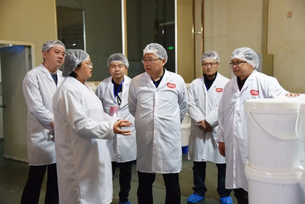 丁點兒股份張靜總經(jīng)理陪同朱副縣長一行領導參觀加工車間