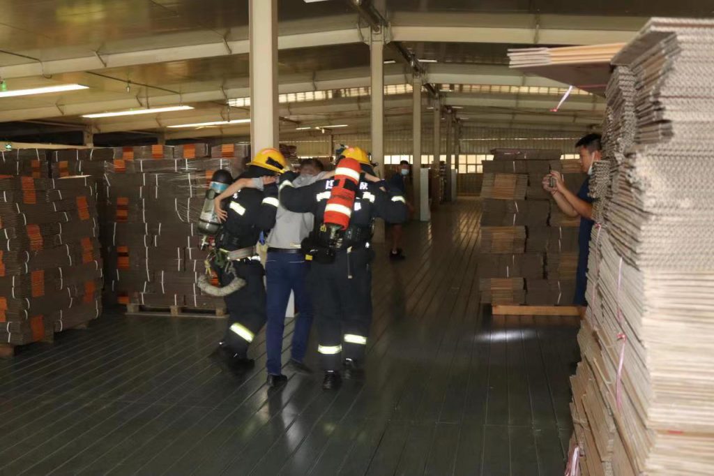 ? ? ? ?演練模擬丁點(diǎn)兒股份成品倉庫內(nèi)出現(xiàn)火情并迅速向周圍擴(kuò)散蔓延,導(dǎo)致1名職工被困成品倉庫。