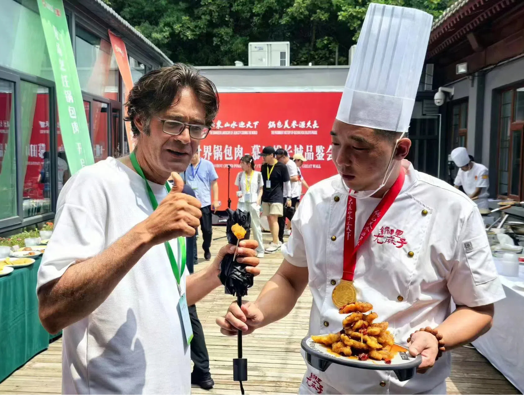 在保留傳統(tǒng)鍋包肉酥脆口感的基礎上,閆正龍大師突破常規(guī),使用丁點兒椒麻雞汁、麻辣雞鮮等高品質(zhì)特色川調(diào)烹制出椒麻鍋包肉和麻辣鍋包肉,為鍋包肉賦予前所未有的麻、辣、鮮、香。兩款鍋包肉既有傳統(tǒng)風味的延續(xù),又有現(xiàn)代口味的創(chuàng)新,得到了現(xiàn)場海內(nèi)外嘉賓及游客的如潮好評!
