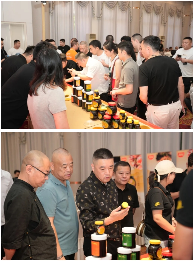 在丁點(diǎn)兒高品質(zhì)特色川調(diào)產(chǎn)品展示區(qū),泡椒醬、干鍋醬、藤椒油等豐富的產(chǎn)品陳列吸引了眾多參會(huì)人員駐足詢問了解。口味穩(wěn)定,快速出餐,可優(yōu)化菜品成本等產(chǎn)品優(yōu)勢(shì),引得大家紛紛咨詢合作。