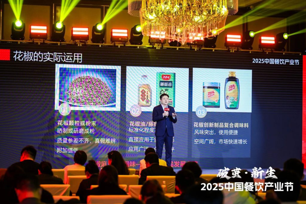 在風向標產(chǎn)品(春季)全球發(fā)布會環(huán)節(jié),丁點兒椒麻雞汁隆重亮相,成為全場焦點,并以出色味型、獨特風味贏得組委會和市場認可,斬獲“2025年度餐飲供應鏈金質(zhì)產(chǎn)品”榮譽稱號。