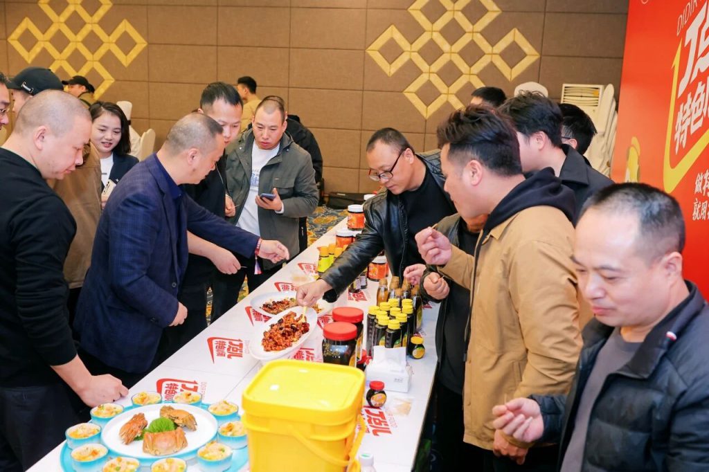嘉賓們一邊品鑒菜肴,一邊與丁點兒工作人員熱烈交流,紛紛對丁點兒高品質特色川調產品表現(xiàn)出濃厚興趣,并現(xiàn)場達成合作。有廚師分享到:丁點兒的干鍋醬層次感很豐富,味道濃郁,省去了自己調味的麻煩,直接提升出菜效率!